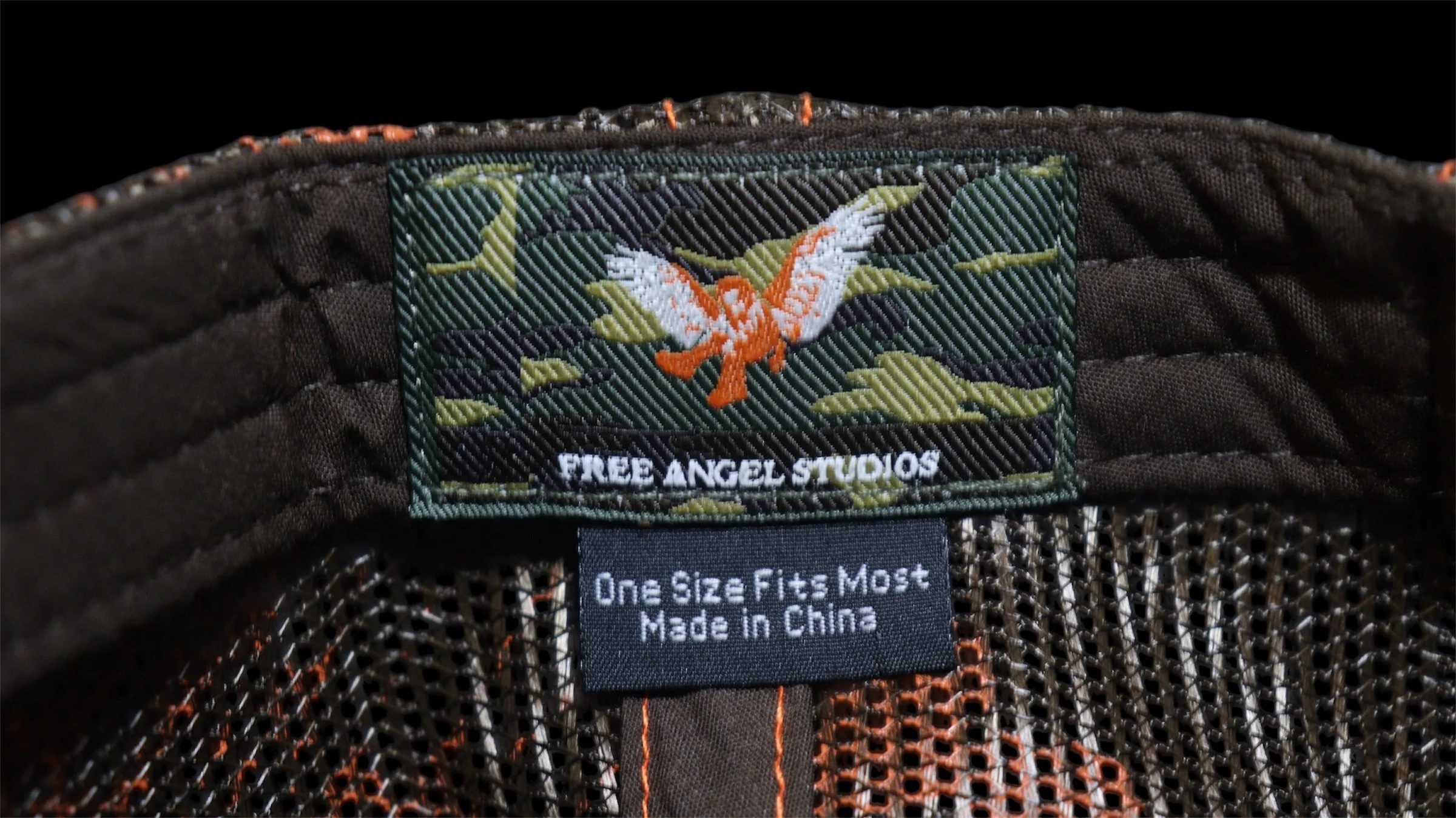 Dark Brown Mesh with Orange “Free Angel Wings” printed on back
